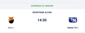 8 december 2025 | NieuwsDe kraker Altior-Rohda’76 in de vierde klasse B is verplaatst naar zaterdag 24 januari 2026. De wedstrijd was al eerder uitgesteld naar donderdag 11 december 2025, omdat de KNVB Altior een speelverbod van twee weken had opgelegd vanwege drie rode kaarten in het duel met WDS. Het is niet zo maar een wedstrijd, want beide…