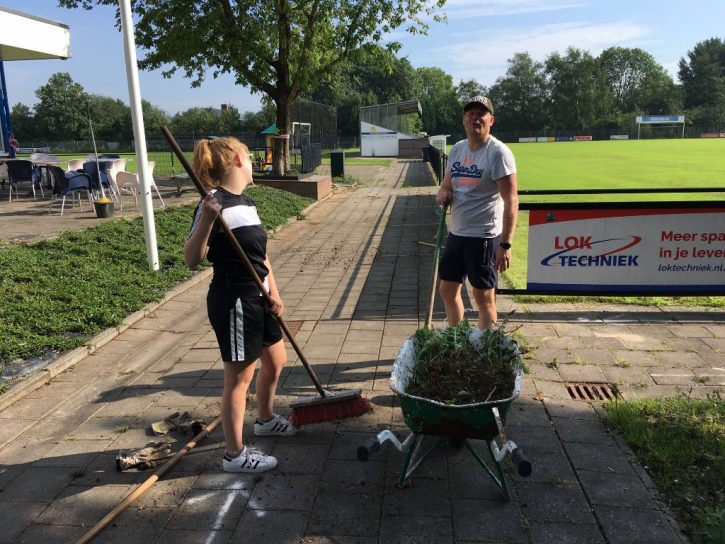 Om 08.30 uur ontvangen we je met een kop koffie om vervolgens aan de slag te gaan. Wat er zoal te doen valt? Reclameborden en dug-outs soppen, tribune aanvegen, trainingsdoeltjes repareren, de kantine cleanen, snoeiwerkzaamheden en tal van andere onderhoudsklussen. Rond het middaguur staan er een broodjes voor je klaar. Daarna klussen we nog even door om na afloop gezellig na te praten met een drankje erbij. We kunnen alle menskracht (18+) gebruiken: gedreven senioren, bevlogen ouders van jeugdspelers en betrokken vrijwilligers.  Zet hem in je agenda: zaterdag 25 juni. Aanmelden is niet nodig.
