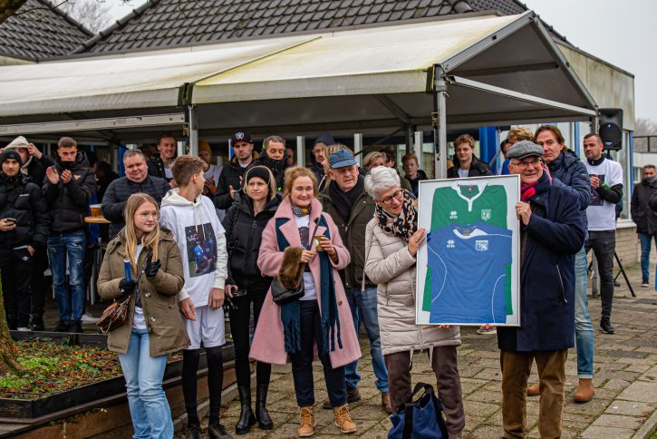 De ouders van Remco, zijn zus, dochter en zoon kregen aan de rand van het hoofdveld een lijst aangeboden met daarin de shirts van Rohda’76 en Zwammerdam.