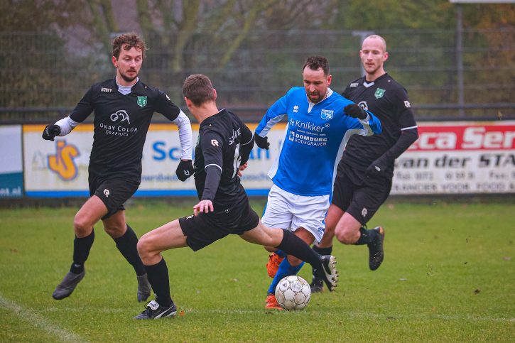 In de eerste drie kwartier waren de blauwen en groenen redelijk aan elkaar gewaagd. ,,Ik vond dat wij in de eerste helft de bovenliggende partij waren. Niet zwaar de bovenliggende partij, maar wel de bovenliggende partij. En met een kopbal van Steven Holthuijsen en een schot van Vlatko Lazic kregen wij goede mogelijkheden op de 1-0,’’ keek trainer Arjen terug op de eerste 45 minuten.