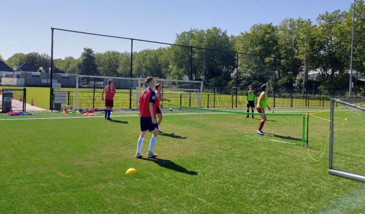 Het seizoen zit er nagenoeg op. Er staan geen wedstrijden meer gepland. Sommige elftallen zijn al gestopt met trainen, terwijl andere teams het voetbaljaar rustig afbouwen. Zoals JO15 en JO17 bijvoorbeeld. Die stapten zaterdag 24 juni het kunstgrasveld op onder leiding van trainer Joan Meijer. Niet om de bal in het net te prikken, maar er juist overheen: met enkele partijtjes beachvoetbal.