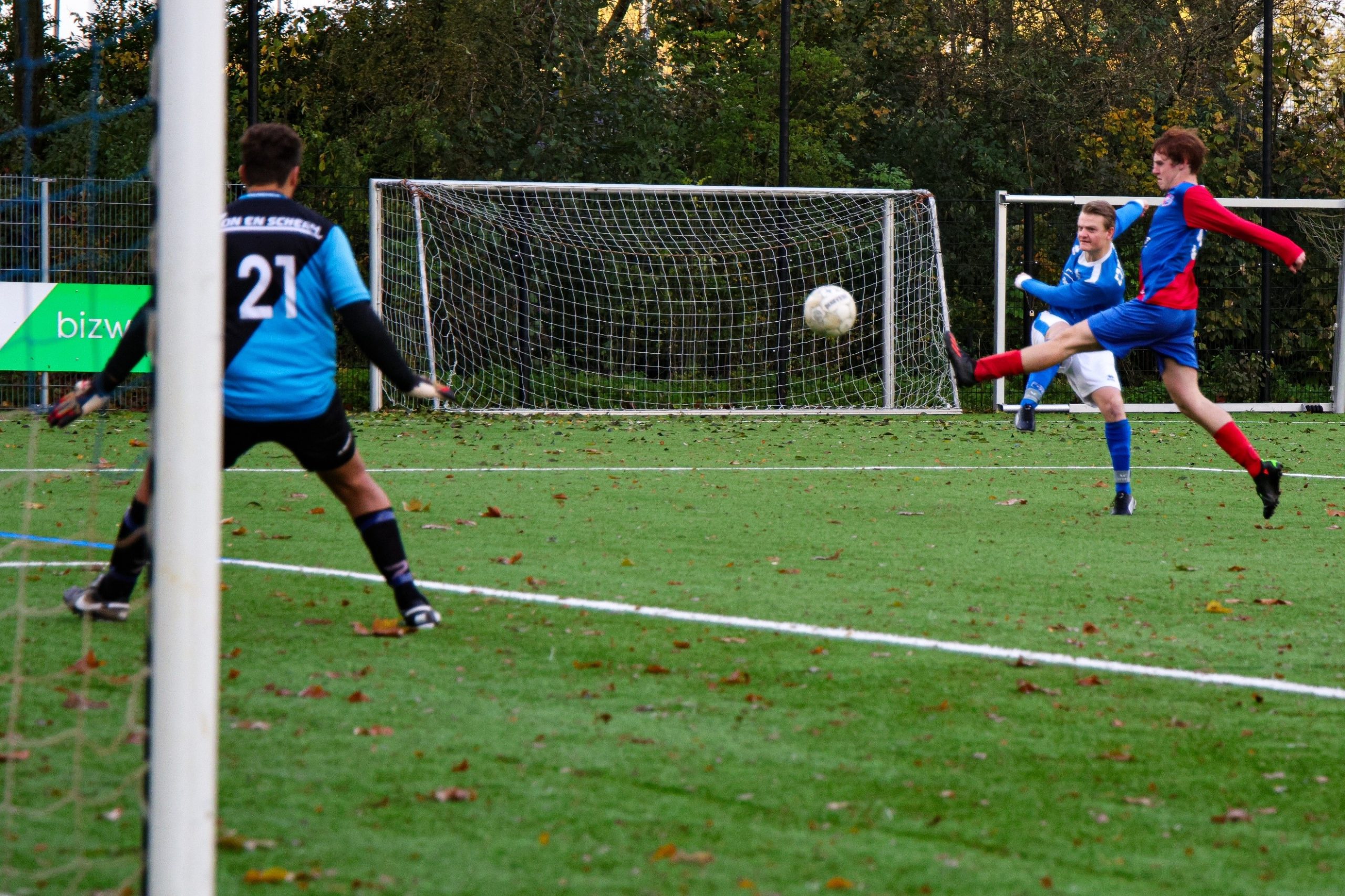 • Mitchell van Waveren schiet de 3-0 binnen (foto’s Don van der Meer)