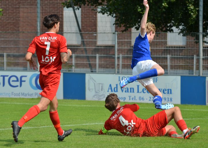 Spelersarsenaal De basiself die de Hagenaar het veld instuurde telde welgeteld twee vaste krachten van het afgelopen seizoen: Siedrik Berends en gelegenheidsaanvoerder Rick Baelde, die een ijzersterke indruk achterliet. De rest van het team stelde Lange samen met voetballers die tot nu toe tussen het eerste en tweede elftal zweefden, spelers waarvoor de clubtop tot op heden onbereikbaar bleef én jongens uit JO19. Voor de nieuwe oefenmeester een uitgelezen mogelijkheid om te beoordelen wie er op de poorten van de hoofdmacht bonzen.