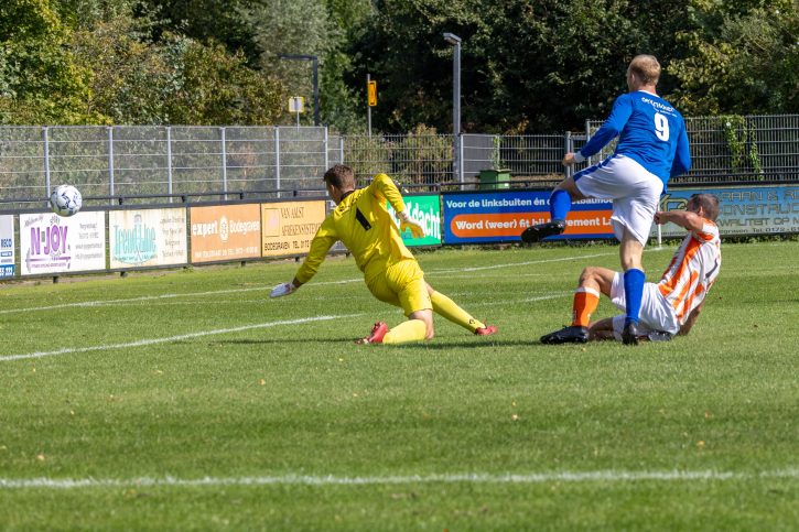 Zonder zelf tot oogstrelend voetbal te komen bleken de blauwwitten een maatje te groot voor de vijfdeklasser uit Leimuiden. De gasten wisten voor de rust de schade beperkt te houden. Alleen Wessel Sterk wist de sluitpost van Kickers’69 te verschalken: 1-0.