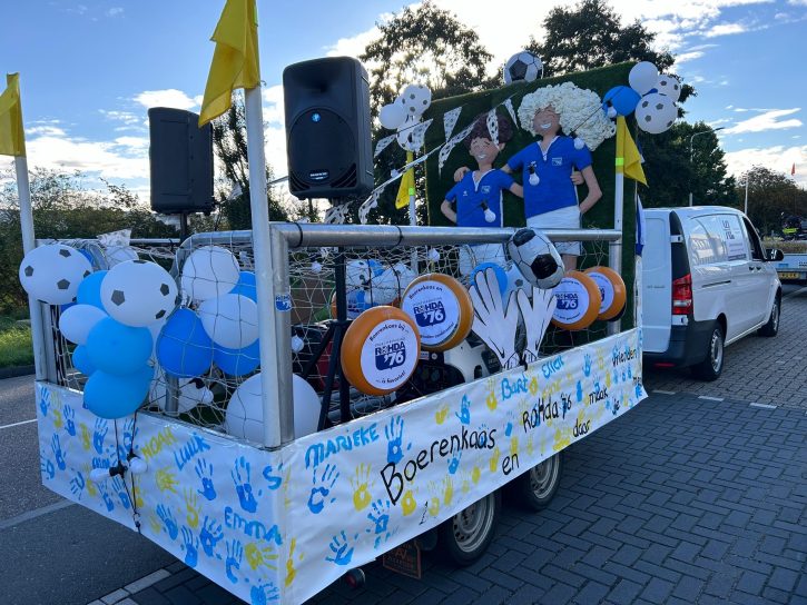 Wat een succes, de hernieuwde deelname van Rohda’76 aan het kaascorso. Het was al weer wat jaartjes geleden dat onze vereniging zich presenteerde op de Bodegraafse catwalk. De terugkeer leverde direct de eerste prijs: de cup met de grote oren. Dit dankzij de fraai uitgedoste kar en het indrukwekkende blauwwitte lint van meer dan 100 (jeugd)leden en ouders.