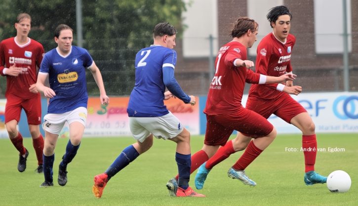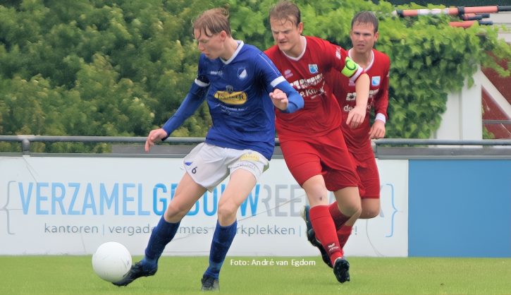 Foto-onderschrift: Mitchell van Waveren duelleert met RVC’er Luuk van Leeuwen. Foto André van Egdom