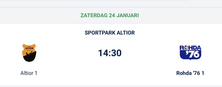 De kraker Altior-Rohda’76 in de vierde klasse B is verplaatst naar zaterdag 24 januari 2026.