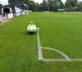 17 augustus 2022 | Nieuws | Geen reactiesHet blijft een bijzondere aanblik: een robot die de belijning aanbrengt op de grasvelden van Rohda’76. Niet zo maar lijnen, maar kaarsrechte witte strepen. En voor de midden- en penaltystip draait het gps-gestuurde apparaat een frivool rondje om zijn as en spuwt vervolgens de kalk precies op de goede plek. En dat zal vooral Hans…